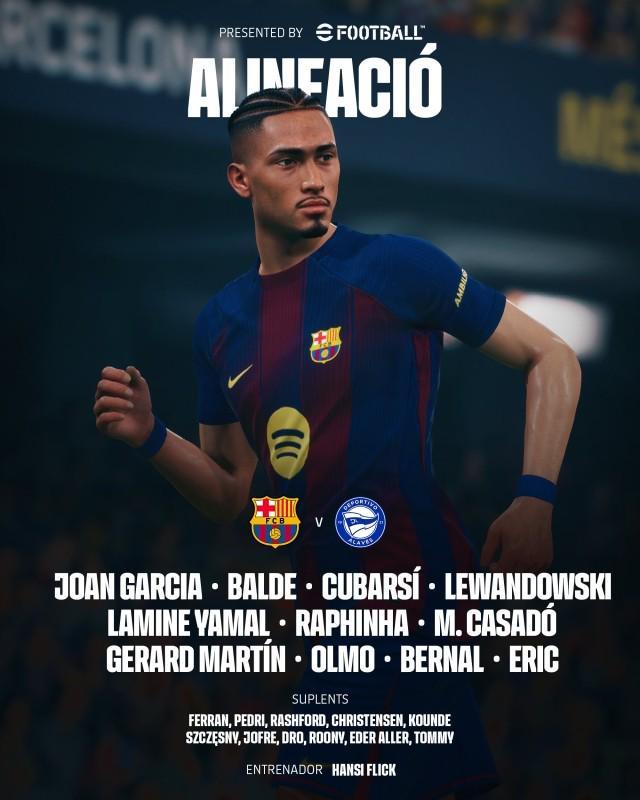 北京时间11月29日23:00,西甲第14轮,巴塞罗那主场迎战阿拉维斯,适逢巴萨126周年庆典,亚马尔、莱万多夫斯基、拉菲尼亚最强三叉戟时隔6个月再度联袂先发,佩德里复出,替补待命。 巴塞罗那首发(433):霍安·加西亚/埃里克·加西亚、库巴西、赫拉德·马丁、亚历克斯·巴尔德/卡萨多、奥尔莫、贝尔纳尔/亚马尔、莱万多夫斯基、拉菲尼亚 替补:费兰、佩德里、拉什福德、克里斯滕森、孔德、什琴斯尼、托伦茨、德罗·费尔南德斯、巴尔德吉、埃德尔·阿列尔、托米·马克斯