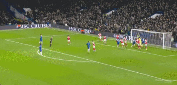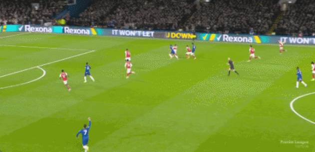 第17分钟,切尔西前场传球快速渗透,埃斯特旺禁区内无人盯防将球打飞了,错失良机。